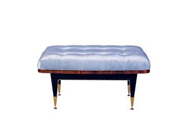 Simple yet elegant Petit French Art Deco sitting bench in ebonized solid mahogany with details in Macassar Ebony veneer and matte gilded sabots. The piece has been newly restored and reupholstered.