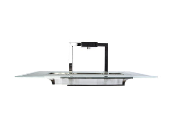 This gorgeous Art Deco Style flush-mount its inspired by a design from the 30’s and it features a chrome base & detailing with cascading square of glass rods and rectangular frosted glass plate.