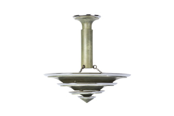 This classic Bauhaus pendant features a cone shape shade with original patina and chrome trims.