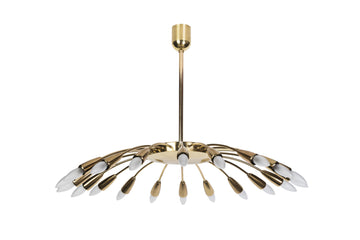 This grand 1950's Mid-Century Modernist Italian sputnik chandelier was designed by Stilnovo. It features a 20 arms polished brass spider form design.