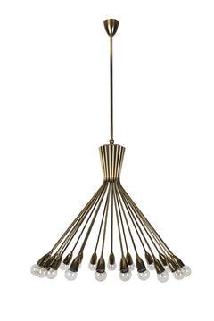 This Mid-Century Modernist spider sputnik chandelier was designed by Stilnovo and it features a 20 arms polished brass frame. The chandelier is in excellent original condition.