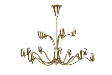 This elegant 1950's Italian chandelier features a brass frame with (15) arms that hold 15 candelabra bulbs.