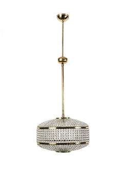This exceptional pendant was designed by Lobmeyr. It features (2,500) Swarovski pearl crystals surrounding a circular brass base. It is in excellent condition and has been newly rewired.