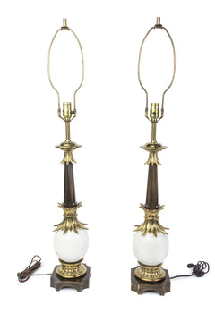 Pair of Hollywood Regency brass and ostrich egg lamps by Stiffel.