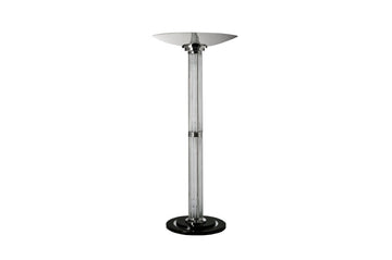 This handsome Art Deco design torchiere features a glass tubular rods situated on top of a black lacquer base with chrome lines & detailing.