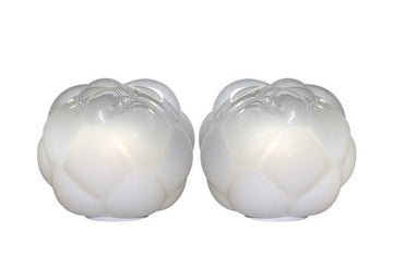 This exceptional highly decorative pair of 1960s Italian lamps are by Vistosi. They feature high quality blown Murano glass in a graduated milky color that gives an ethereal feel to the lamps, on a circular white cold painted metal base.