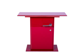 This captivating Art Deco style console / bar features a swing door with chrome lines & fixture finished in a vibrant red high gloss lacquer.