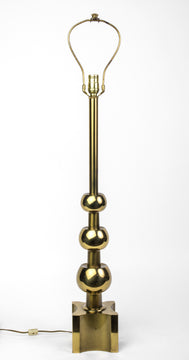 This wonderful Mid-Century Modernist brass lamp was designed by Stiffel. It features a three stepped ball design and age appropriate patina. X shaped base. It is in excellent vintage condition.