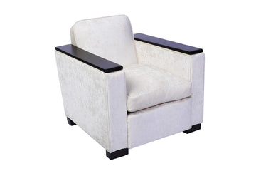 This beautiful solid Mahogany Art Deco club / armchair by Jacques Adnet has been fully restored with stained arms and legs and reupholstered in a pearl cotton velvet.
