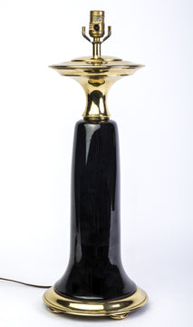 This beautiful Art Deco style table lamp was designed by Chapman. It features brass & black ceramic detailing giving it a gorgeous luster. It is in excellent vintage condition.