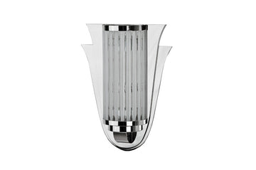 This captivating Art Deco wall sconce features a streamlined design with chrome details, with mirrored glass back panels and tubular glass rods. It is in excellent condition and has been newly rewired.