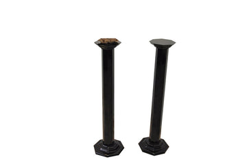 This wonderful 1940's pair of columns have been fully refinished in black lacquer with a high-gloss finish.